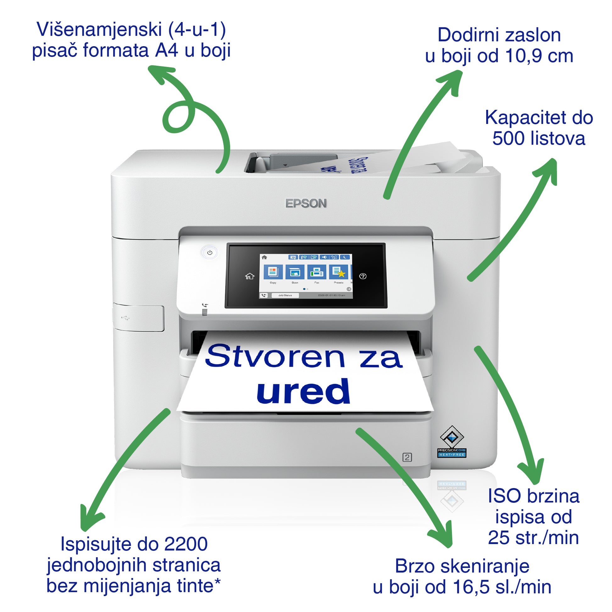 Epson WorkForce Pro WF-C4810DTWF višenamjenski je A4 inkjet pisač poslovne klase , dizajniran za korisnike koji traže visoku učinkovitost, niske troškove na stranici i fleksibilno povezivanje. Uz podršku za automatski obostrani ispis, ADF, Wi-Fi i Ethernet, ovaj model je idealan za manje timove i kućne urede koji rade ozbiljno.